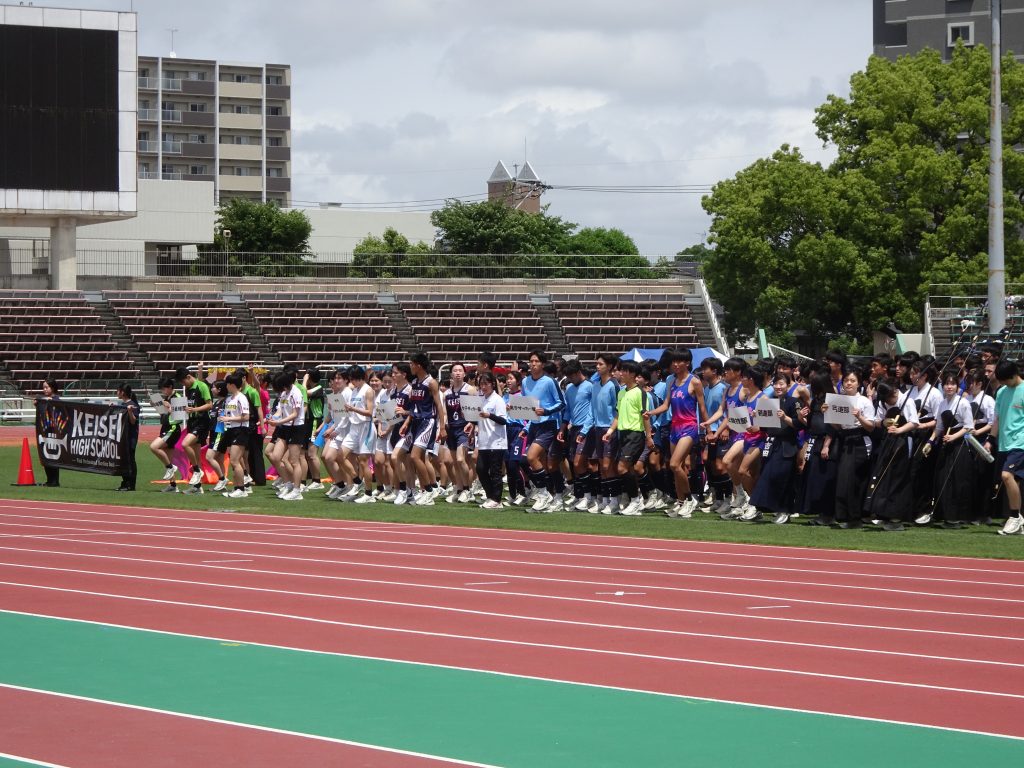 「正に青春ど真ん中っ!」・・・水前寺競技場が慶誠高校の若人が発する熱気に包まれました。保護者・ご家族1000名を超える観衆(何よりの『感謝』!)に応えるべく、日頃の体育の授業の成果と学びの一端を限られた時間の中で全力で駆け、跳び、踊り、応援し、「青春」を全身使って、表現しましたっ!