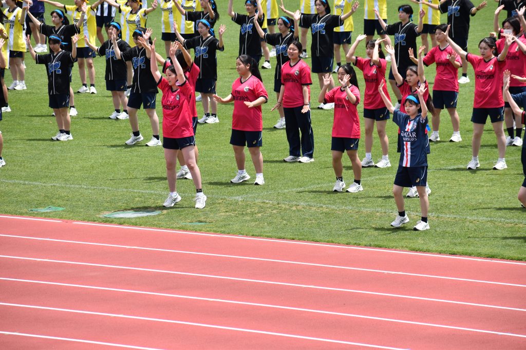 「これが練習の成果ですっ!Let’s dance!」・・・その練習は令和6年度3学期から始まっていました。時間があれば、時間を見つけては、Let’s dance!って状況の生徒たちでした。慶誠高校最後の体育祭となる3年生は、クラスTシャツをまとって全力のいい顔ダンスっ!
