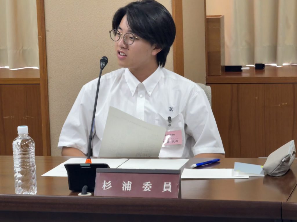 本校生徒会3名も慣れない協議に四苦八苦しつつ、最後は各委員会の協議内容を行政への提言としてまとめ、本会議場に進み議決を取ります。
