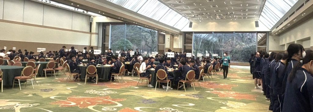 おはようございます。今日は12月12日、日付のゴロ「イッチニィッ、イッチニィッ」もよく、元気にスタートです!修学旅行2日目が始まりました。まずは、宿泊地である「軽井沢プリンスホテルウェスト」へカメラを向けます!