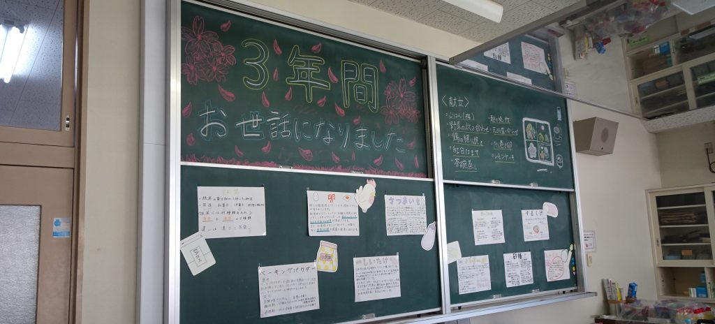 あったかい、黒板メッセージ!」・・・先生方の前には、手書きの黒板メッセージ!一緒に歩いてきた仲間たち、最高でした!この学び舎があってこそです!先生方、ありがとうございました!
