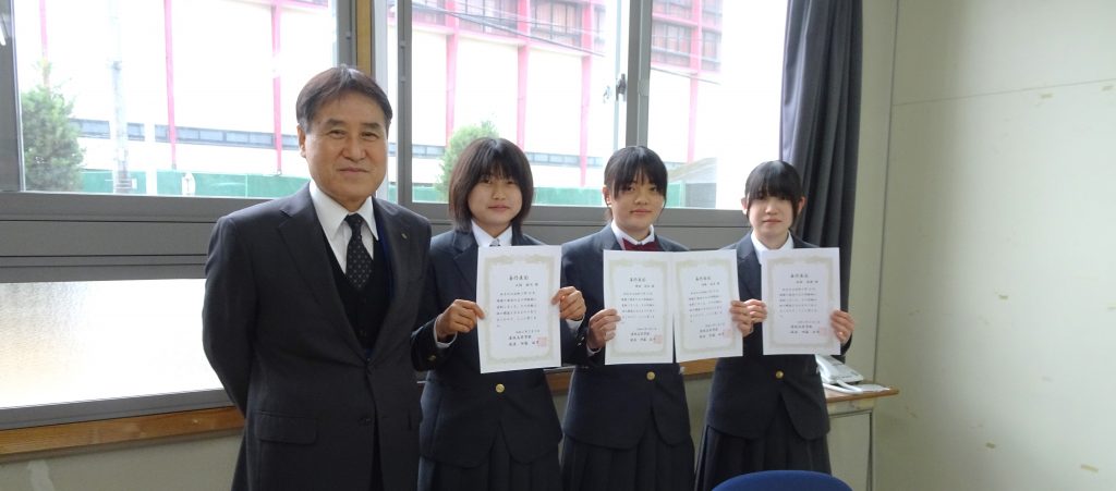 していたのが部活(弓道部)が終わった4名の慶誠っ子たちでした。この素敵なことが学校に連絡があったのですが、介抱されたご本人ではなく、その光景を見られ感動した方からでした。この「善行」を本日、伊藤校長先生から表彰していただきました。その慶誠っ子たちとは・・・